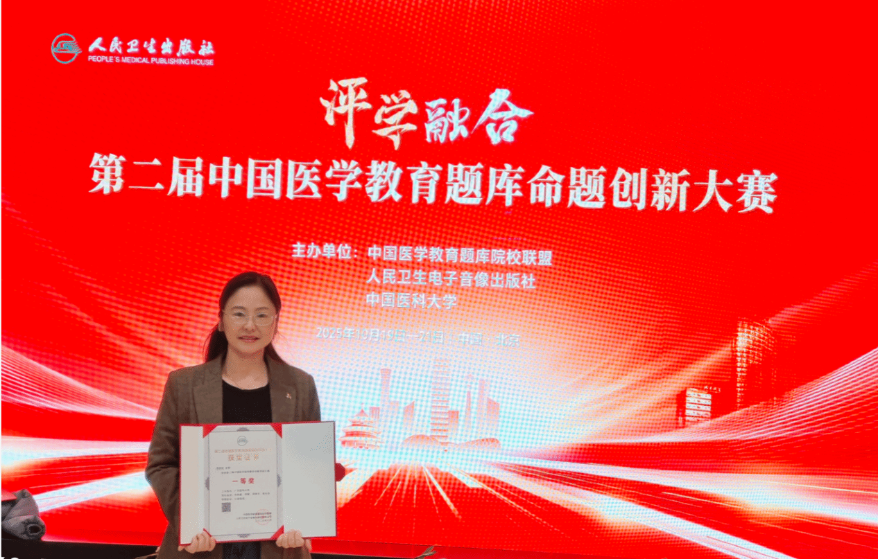 中国医学教育题库命题创新大赛是国内医学教育领域的高水平专业赛事,旨在引导广大医学教育工作者深入研究教学规律,创新命题理念与方法,全面提升医学人才培养质量。本次大赛的优异成绩,充分体现了我校教师卓越的教学水平、深厚的专业素养和积极的创新精神,也是学校长期坚持教育教学改革、注重师资队伍建设的成果体现。学校将继续以“评学融合”为理念,以命题创新与考试评价改革为重要抓手,全面推动医学教育育人方式、评价体系与管理机制的深度变革。通过“以赛促教、以赛助学、以赛促改”,持续提升教育教学质量,为深化医学教育改革、培养高质量医学人才贡献新的力量。(文、图/马媛媛 审核/周艳芳 复核/周圆 审发/裴金涛)