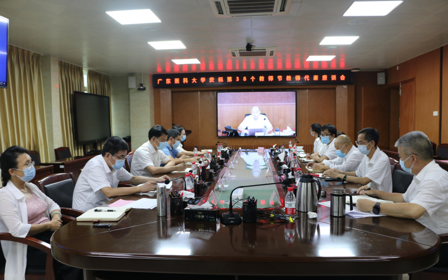 9月8日,学校在两校区双向视频召开庆祝第38个教师节教师代表座谈会。学校党委书记、校长卢景辉主持并讲话。校领导罗辉、刘新光、谭平、赖焱烽出席会议。