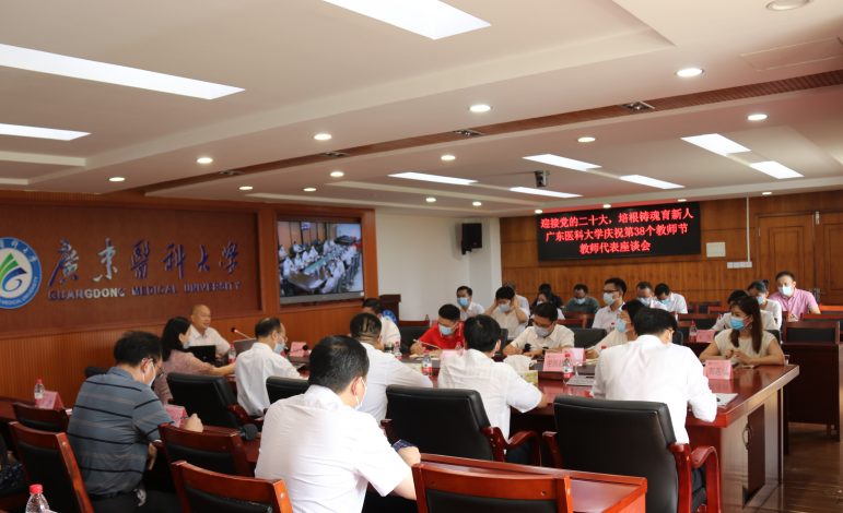 徐广贤、郭莲仙、申丽、陈金怡、雷桅、谢剑君、皮江、陈图刚、郑佳、王勇、吴文贤、王芳、胡显镜、张标、赖天文、刘海漫、吴春丽等老师先后发言,围绕推进高水平医科大学建设,畅谈教师立德树人和争当育人大先生的使命担当。大家表示,作为广东医人,就要为学校建设发展特别是学科建设、人才培养、科技创新等贡献自己的智慧和力量。他们结合自己的见闻、经历和观察、思考,对学科建设、人才工作机制、辅导员职业规划、人才评价的职称评审、实验室建设与仪器设备共享等提出了意见和建议。座谈会气氛热烈,大家畅所欲言、真诚交流、献计献策,提出了很多富有建设性的意见建议。
