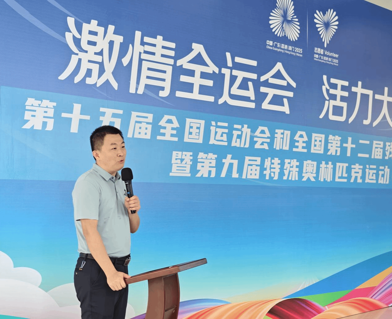 誓师大会现场,石明副校长为十五运会和残特奥会广东医科大学赛会志愿服务队、临时党支部、临时团支部授旗,让党旗、团旗高高飘扬在赛事一线,为广东医志愿者凝聚思想共识、筑牢组织根基,确保各项赛事服务工作方向明确、高效推进奠定扎实基础。