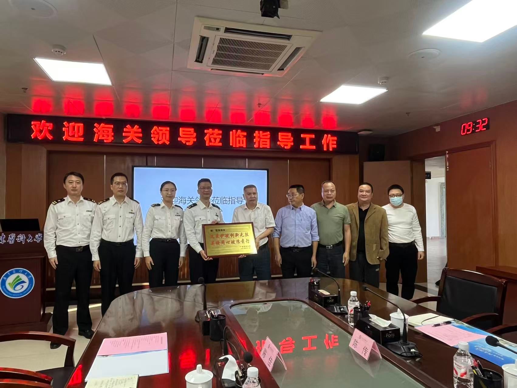 会后,学校与霞海海关举行授匾仪式,向献兵代表学校向海关授予牌匾,感谢其长期以来对学校的支持与帮助。随后,海关人员参观了学校实验室,实地了解进口设备的使用情况,进一步加深对学校科研需求的理解。